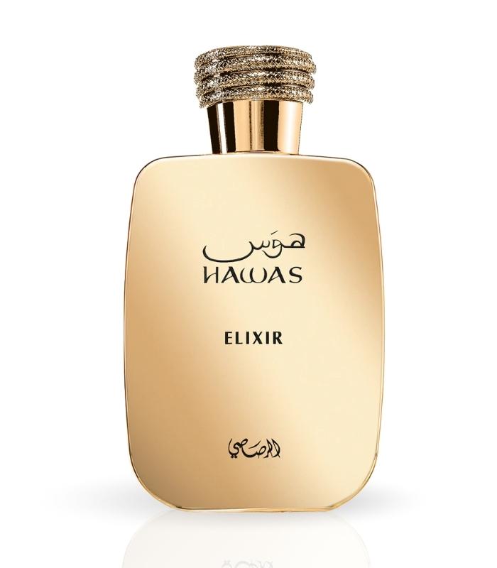 Rasasi Hawas Elixir blends fresh citrus, spicy florals, and warm woods for a passionate, long-lasting scent.