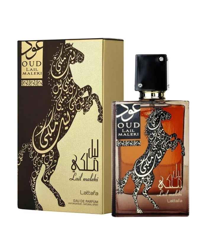 Lattafa Oud Lail Maleki blends fruit, spice, oud, and amber into a bold, long-lasting oriental fragrance with rich elegance.